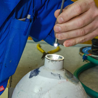 - Cilinders worden met water gevuld en er komt een persnippel op. Vervolgens worden de cilinders onder toeziend oog van een keurmeester hydrostatisch gekeurd.